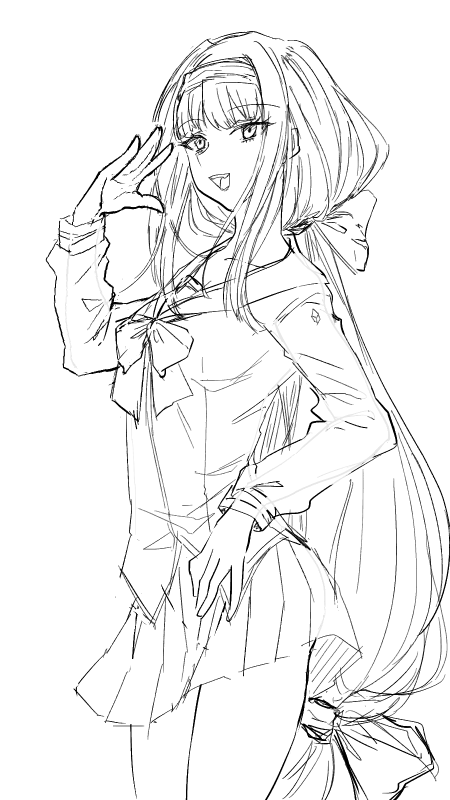 会社での落書き(?年前)⇒ワダ絵見ながら下書き(1/5)⇒ヒント画像(12/23)⇒自動彩色⇒手直し⇒加筆+色バランスのため線画表示消す