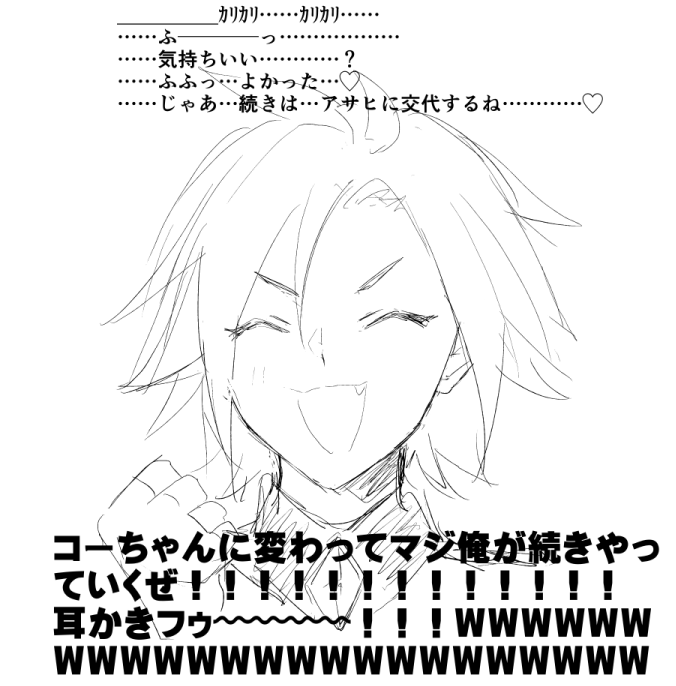 エロがりを奏でてそうな見た目して、耳年増でむっつりすけべで「俺にまかせて……」とか言って内心ドキドキして耳の辺りの血流の音すごすぎて声聞こえないし何も頭に入ってこなくてテンパってるけど頑張って余裕なフリしてる処女なので、ちょっとでも流れがアサヒに傾くと総崩れになるコヨイ。